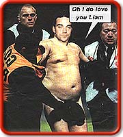 Robbie Williams looks as if hes stirred up just enough controversy for his new album and single release. And what better way to do this than re hash that dead as a donkey story about him and Liam wanting a fight.